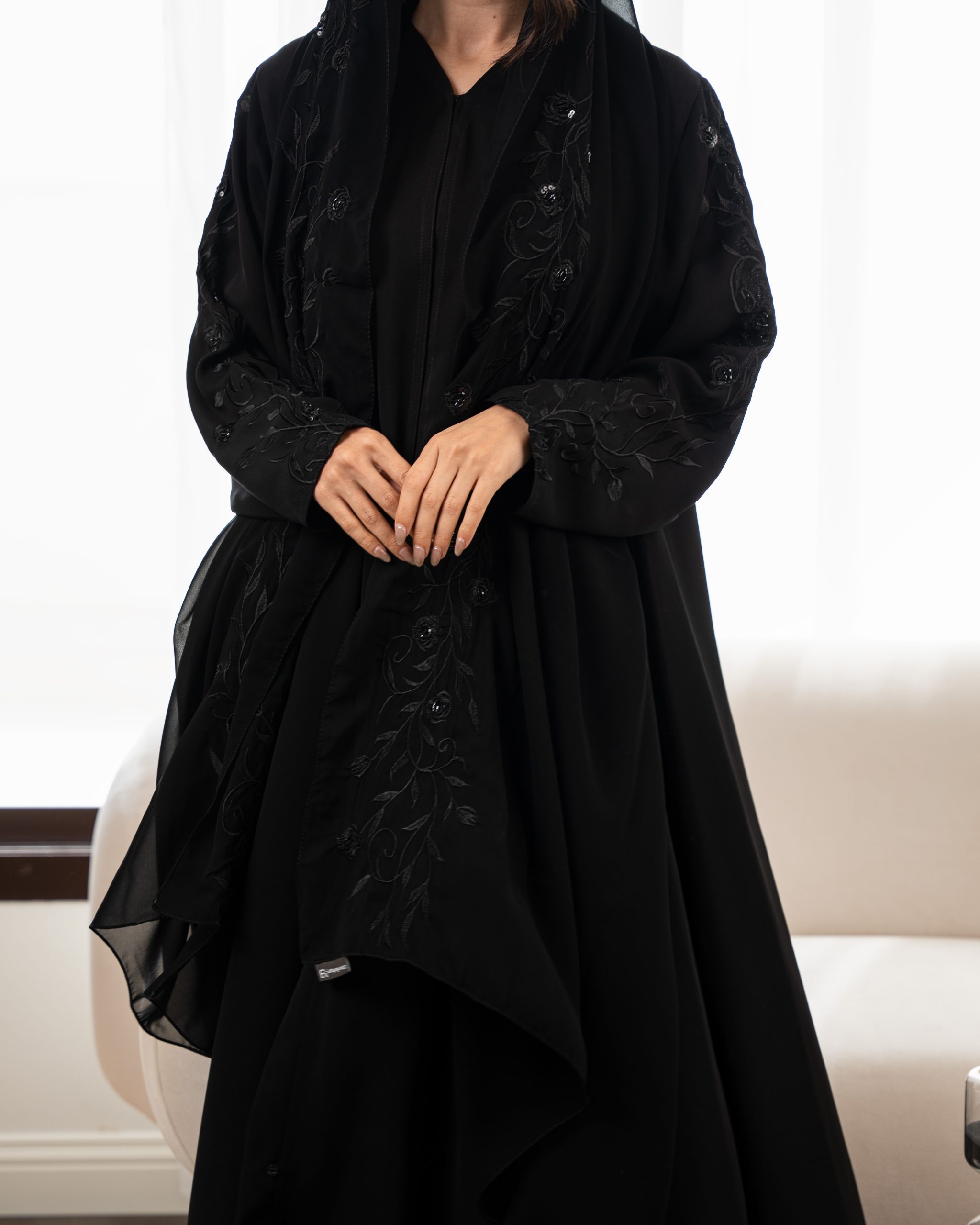 هالعباة الأنيقه شغل تطريز ع الكم والخلف بقماش إنترنت