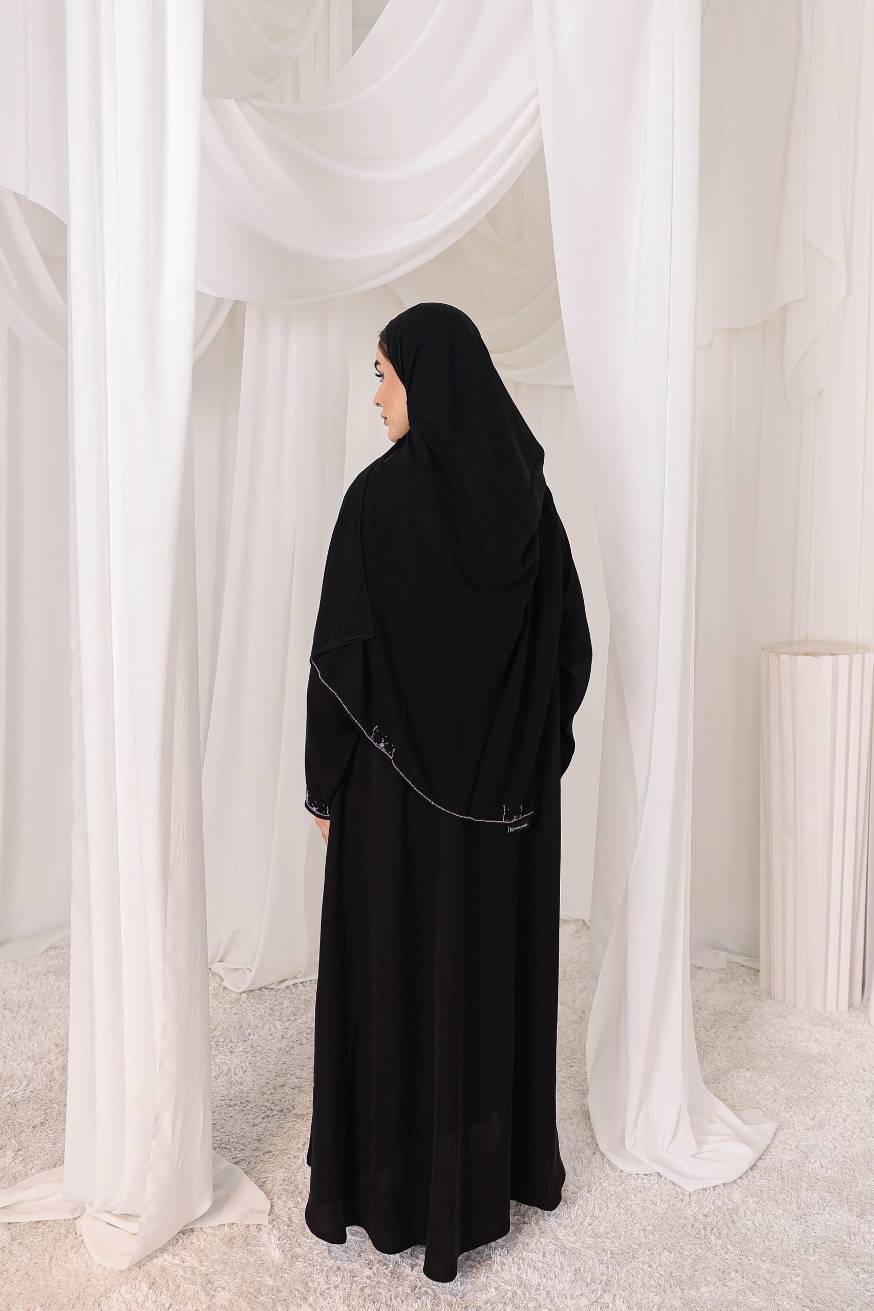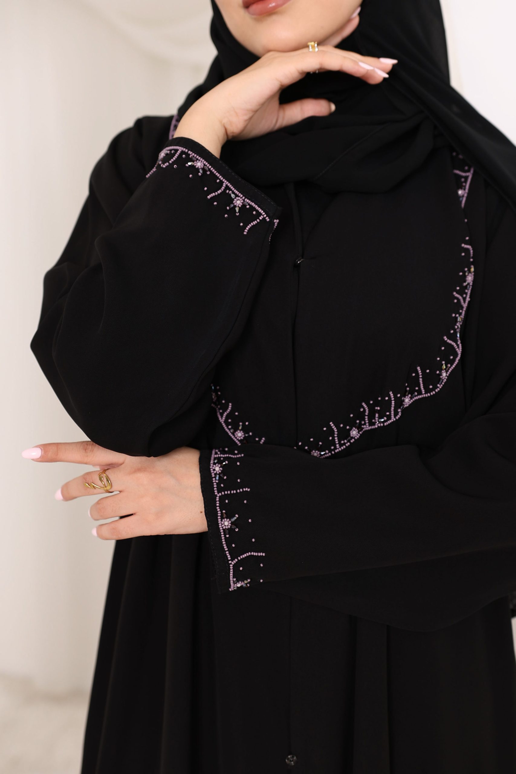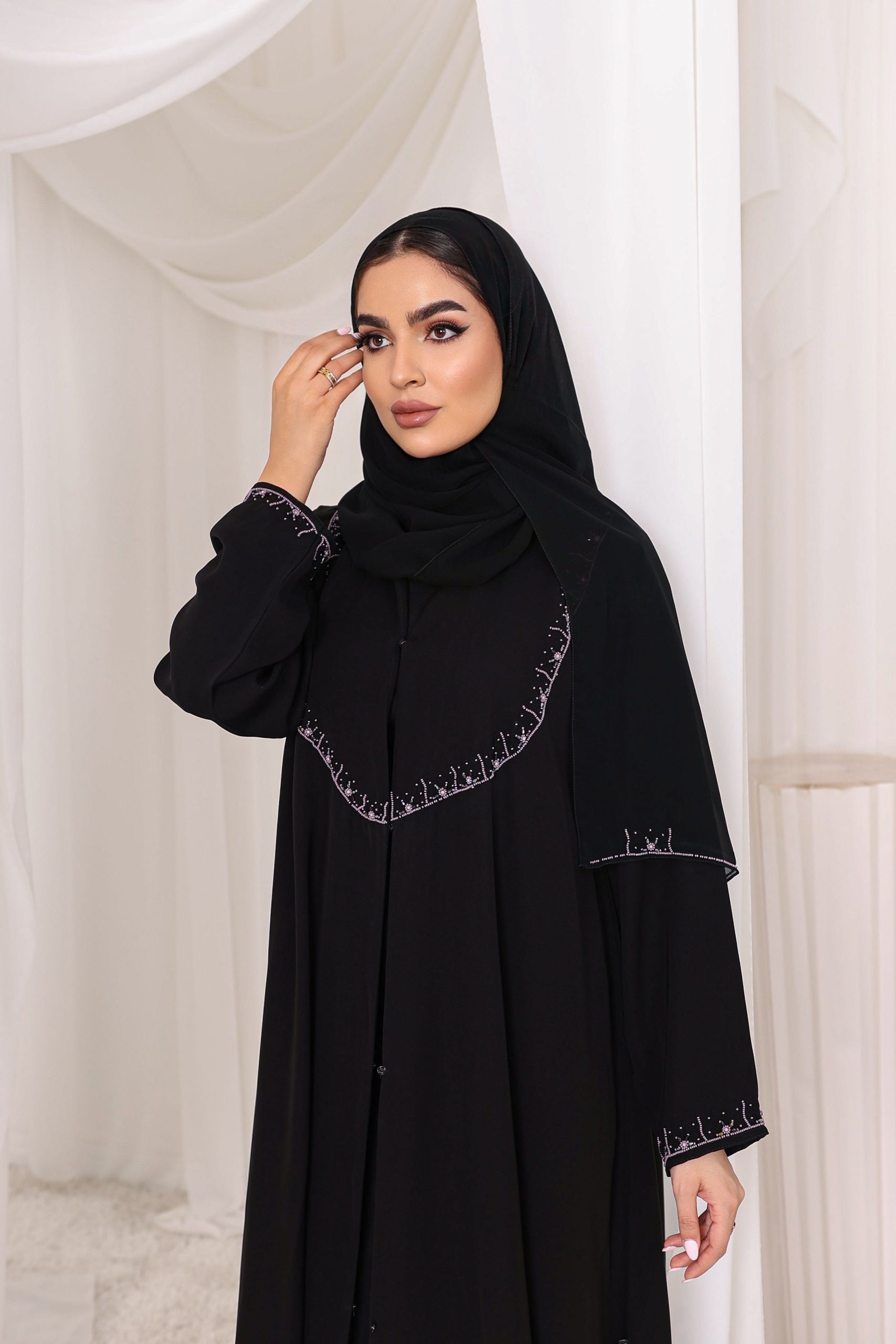 عبايه عمليه وبسيطه شغل شك خرز بقماش ندى
